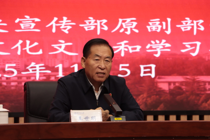 11月5日,西北师大举办党委理论学习中心组(扩大)学习,专题学习党的二十届四中全会精神。党委书记贾宁主持报告会。中宣部原副部长王世明应邀作专题辅导报告。校领导焦爱胜、张明军、王文昇、马世年、阎岩,学术副校长荀渊出席报告会。学校党委委员、纪委委员,各单位、各学院党政主要负责人,机关部门副处级以上干部以及全体辅导员参加学习。